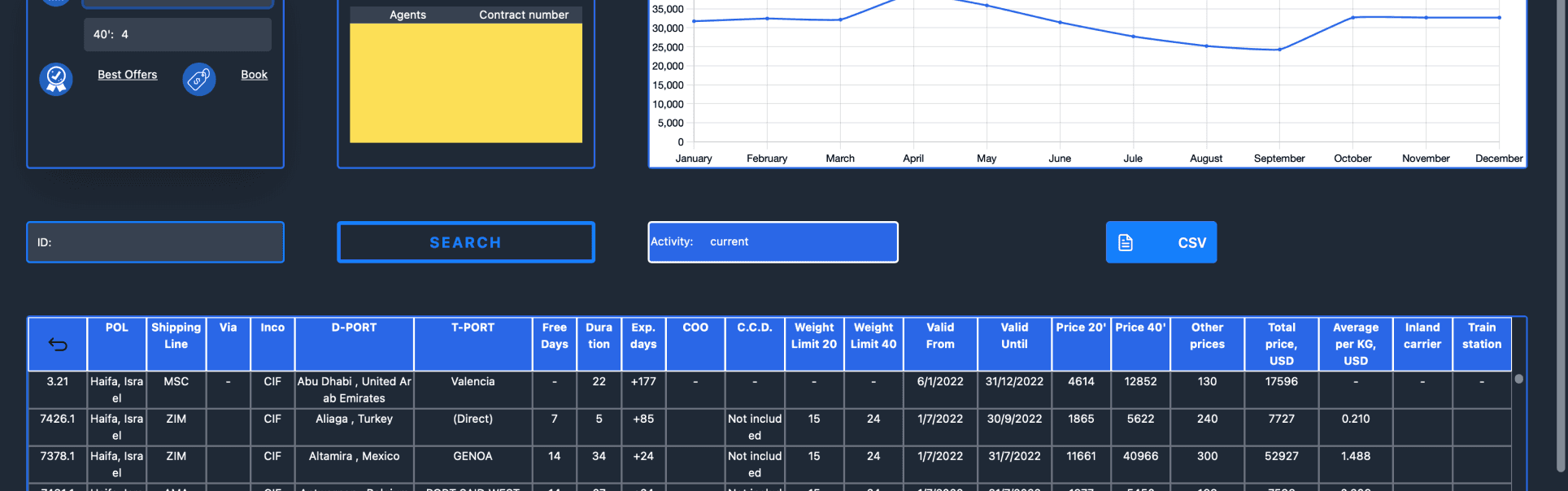 carriers, schedules. Everything a logistics coordinator would need.